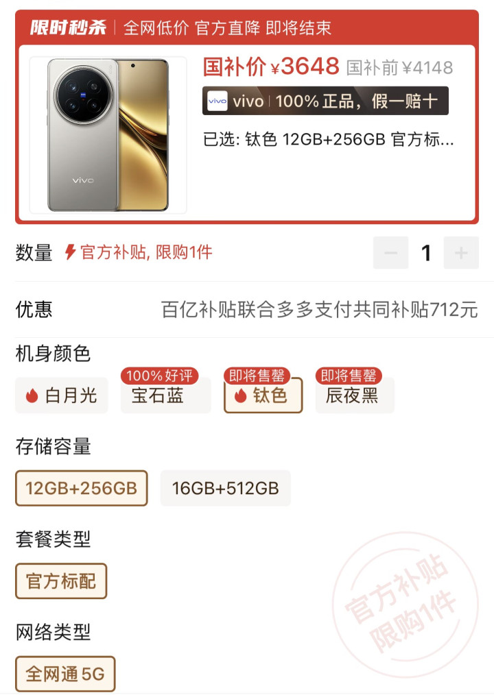 经过以上较为简单的介绍,不难发现就vivo这款机型的话,整机配置参数上的表现还算是较为均衡的,就作为普通消费者的日常主力机去使用的话,依旧是能够带来较为出色的使用体验,完全就属于是一款懂生活、懂影像、懂你的“智能伙伴”,如果你正在寻找一款能打得狠、拍得美、用得久的旗舰机型,就vivo X200 Pro绝对值得考虑!要知道,就在价格层面上,这款vivo旗舰所出现的下调情况也是较为严重的,参考到如今手机市场中的情况,已经是下调了1651元的价格了。